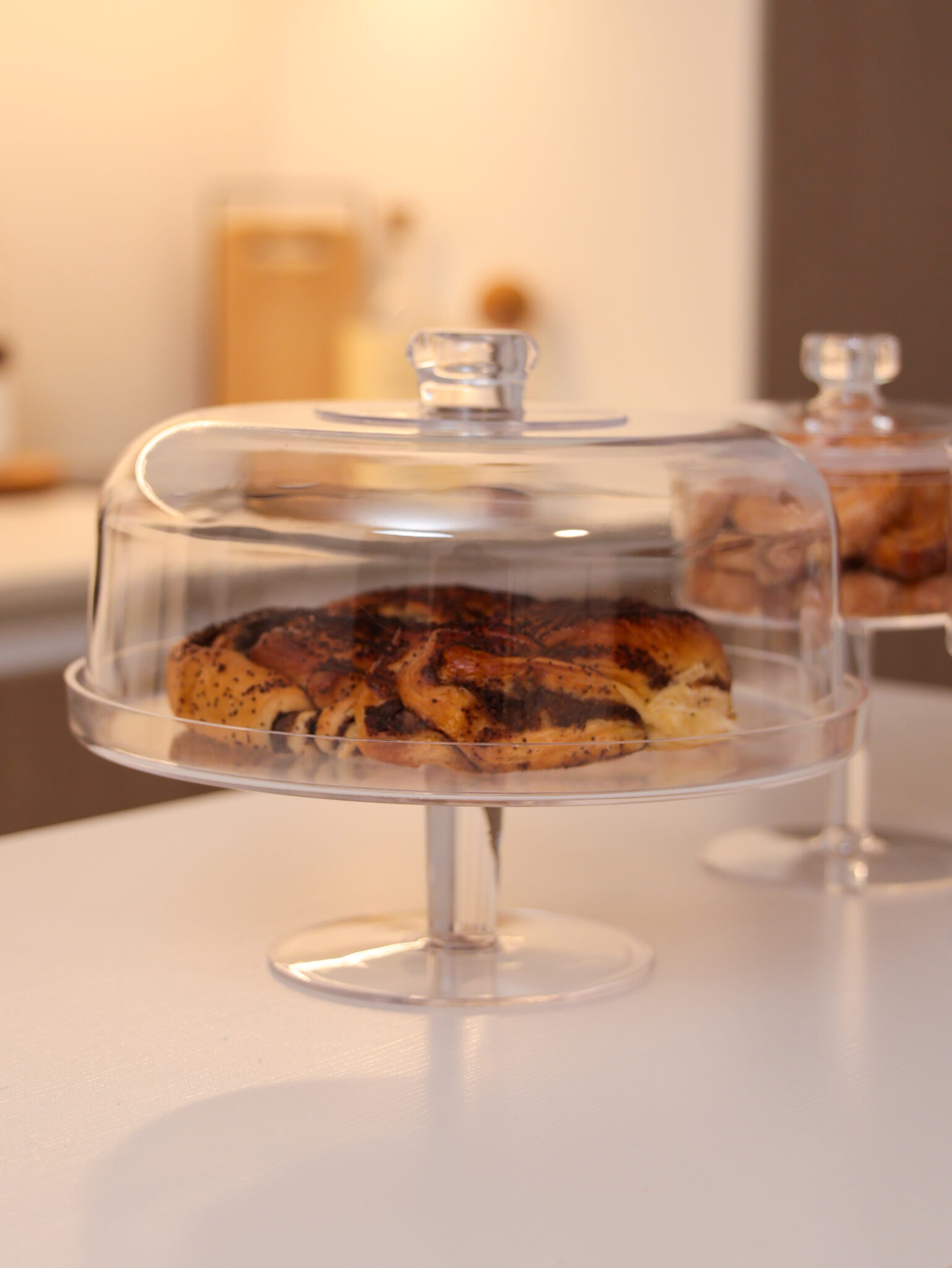 החומר האקרילי השקוף מעניק ראות מלאה לתכולה, כך שהקינוח או המאפה יבלטו כראוי – והעיצוב על רגל מוסיף גובה ועצמת נוכחות לשולחן האירוח או המתנדרך שלכם. הגודל ‎28 × 22 ס״מ מספק שטח נדיב להצגה, אך לא תופס מקום מיותר – ולכן מתאים הן למטבח ביתי והן לאירוח חגיגי.