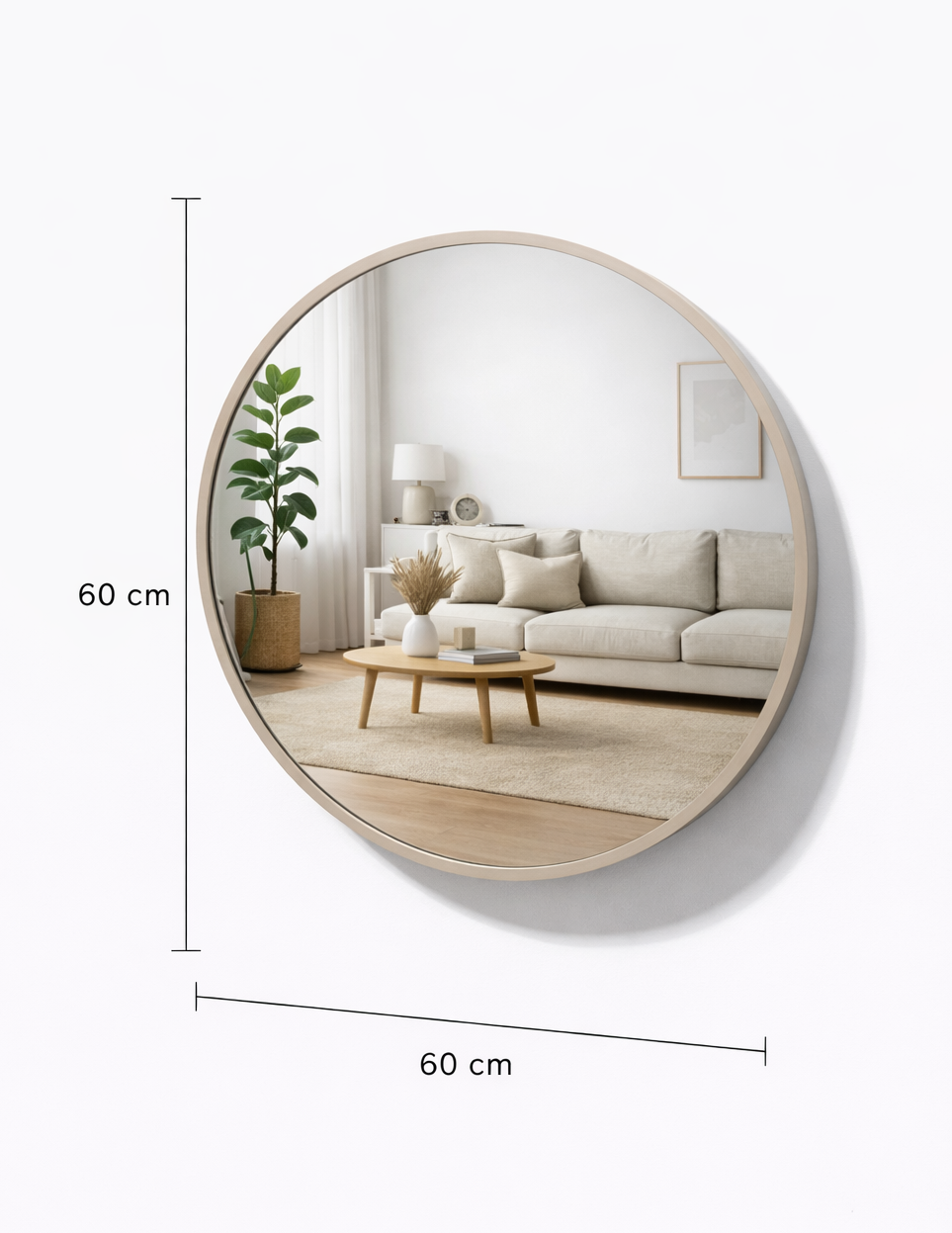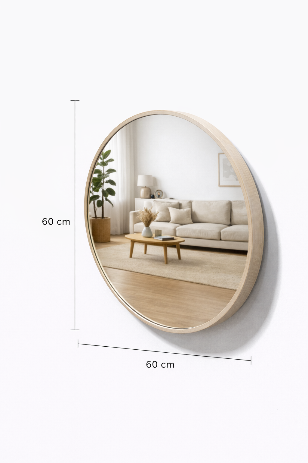 מראה עגולה קוטר 60 עץ בהיר