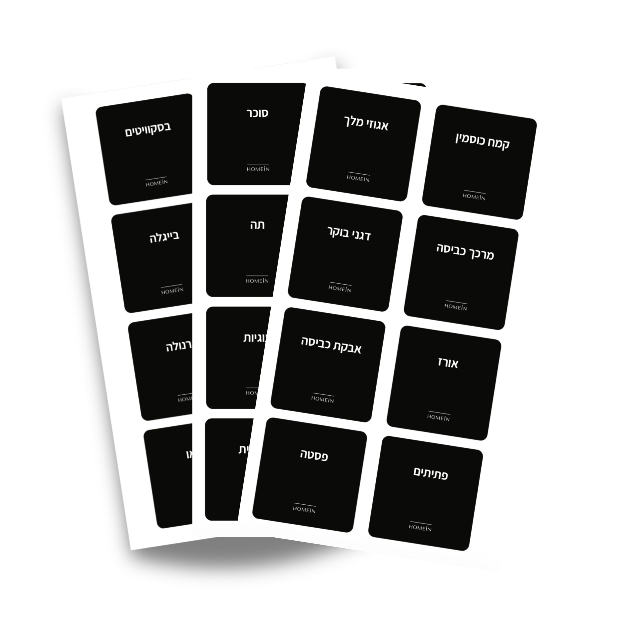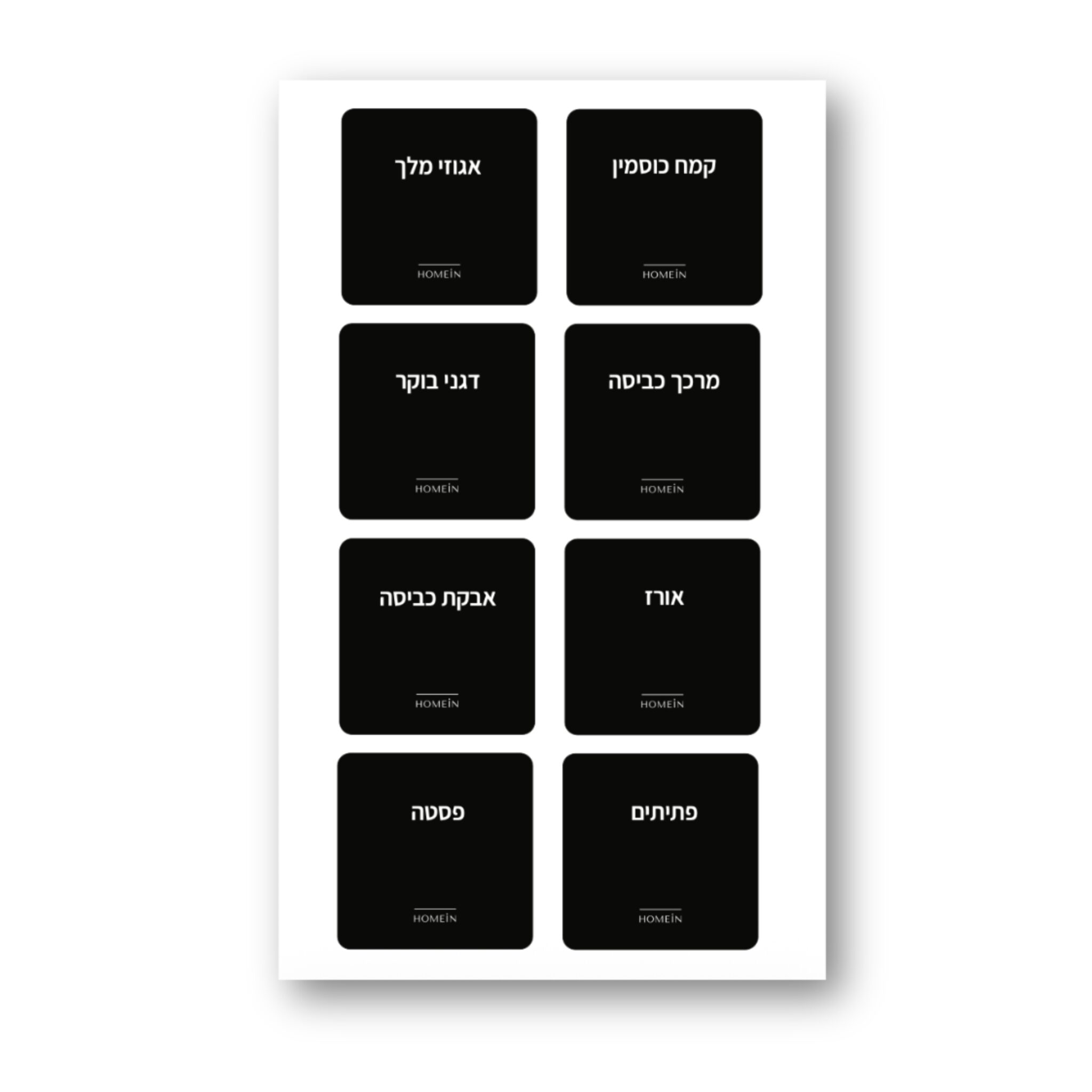 הסט מיועד להדבקה על קופסאות אחסון, צנצנות, קופסאות תבלינים, מזווה וארונות, ועוזר ליצור סדר, נוחות וגישה מהירה לכל מוצר.
