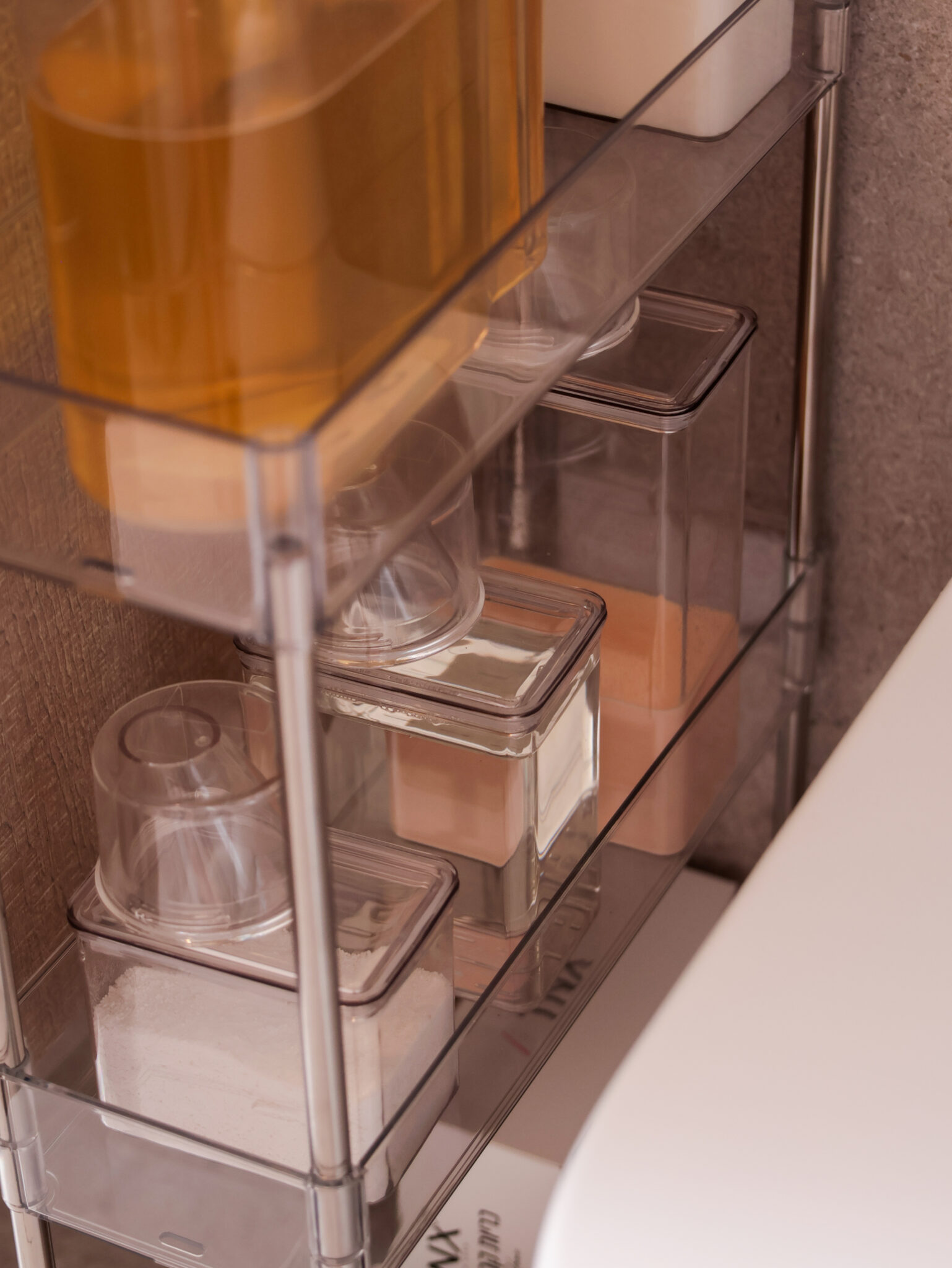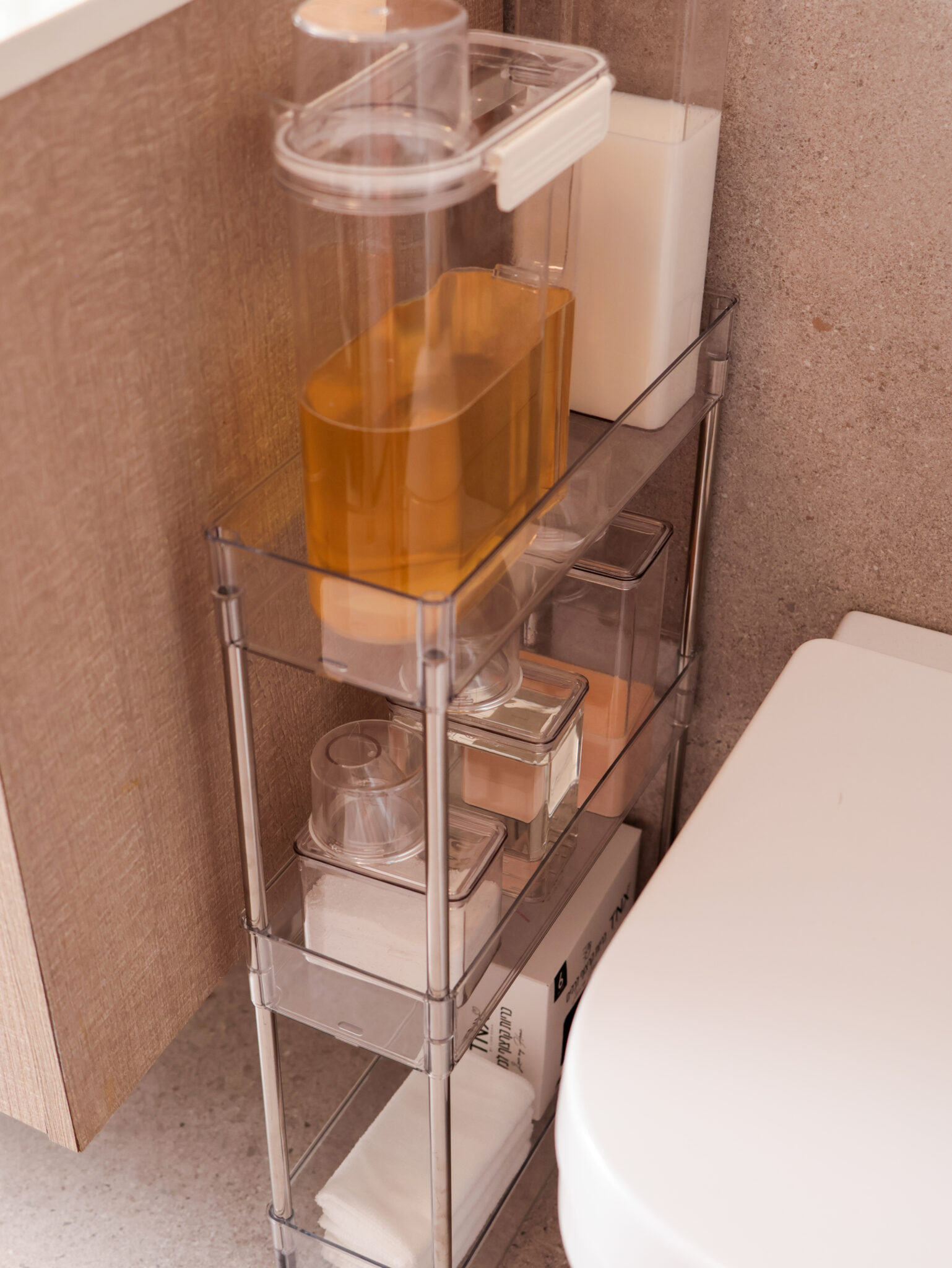 3 קומות אחסון: מציעה שפע מקום לבקבוקים, מוצרי ניקיון, כלי רחצה, תבלינים ועוד, תוך שמירה על הכל נגיש ומסודר.