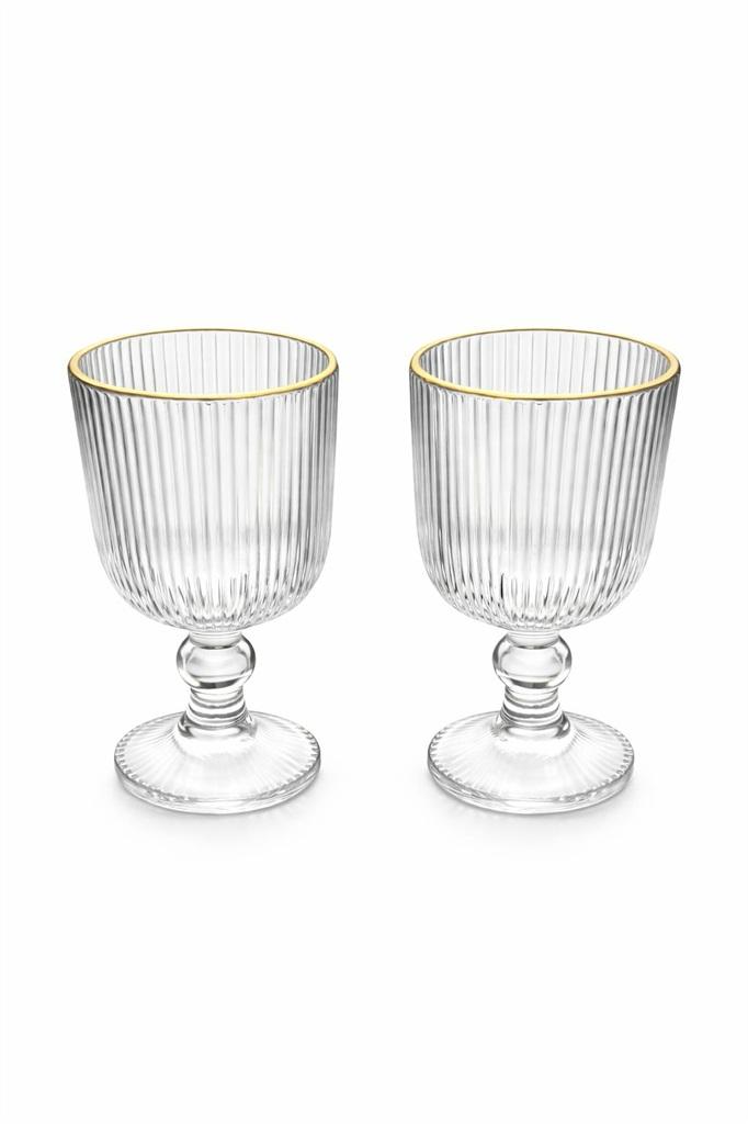 הכוסות עשויות זכוכית איכותית, שקופה ועמידה, המבליטה את צבעי המשקה בצורה מושלמת. פס הזהב מוסיף עיצוב מוקפד ויוקרתי, מדגיש את הכוס על הרגל ויוצר חוויית שתייה אלגנטית ומרשימה.