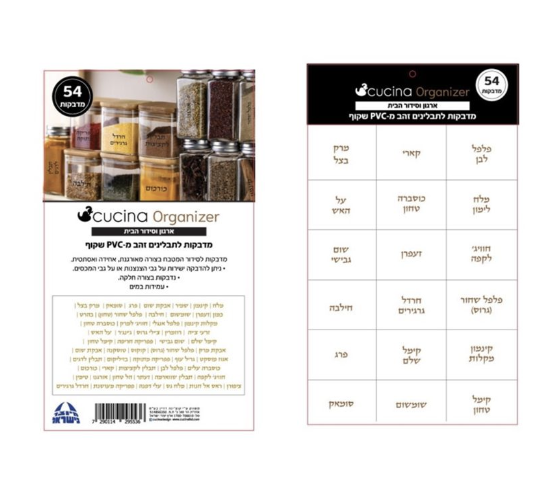 המדבקות עמידות במים, מתאימות לשימוש יומיומי וקלות להדבקה. פתרון אידיאלי ליצירת סדר, אחידות ונוחות במטבח, במגירות ובמדפי המזווה.
